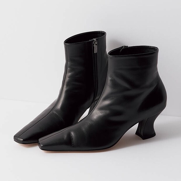 「独特なフォルムに魅せられます」ヒール位置がやや前に寄っていて、モードな雰囲気。レザーも薄手で柔らかく、ノーストレスではけます。シンプルなブーツに飽きた方にぜひトライしてほしい。ブーツ[ヒール6㎝]¥37,950(ユナイテッドアローズ/ユナイテッドアローズ 丸の内店)