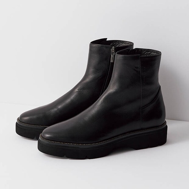 小柄な皆さんには特に嬉しいプラットフォームで、ぐっと身長を盛ってくれます。スニーカー感覚ではけるラフさがあり、ダウンコートなどのカジュアルアウターとコーデしやすい。ブーツ[ヒール4㎝]¥37,950(マッキントッシュ ロンドン/モーダ・クレア)