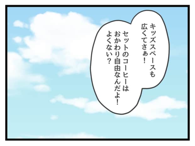 広いキッズスペース、おかわり自由のコーヒーなど、お店の良さをアピールするはるかに、りさは真顔で「大人は?」とたずねます。