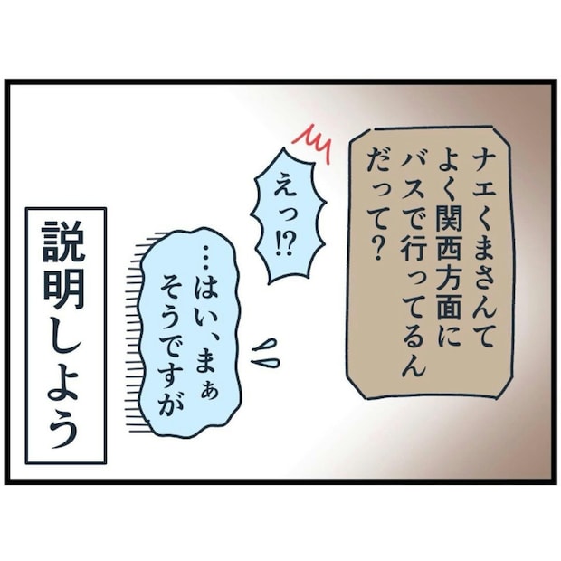 さらに、関西方面までのバスの料金やチケットのとり方などを聞かれ、ナエくまさんは困惑したようです。