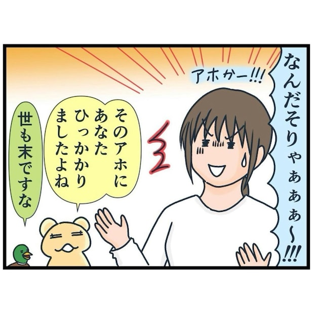 お金は取り戻すことができたものの、信じていた友人からの裏切りは大きなダメージ。ナエくまさんはショックを受けつつも、友人・あずきもこのバイトをやめさせようと、手を貸してあげました。