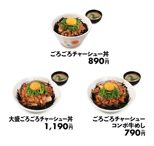 あわせて、ボリューム満点な「大盛りごろごろチャーシュー丼」(税込1,190円)、牛めしと組み合わせた「ごろごろチャーシューコンボ牛めし」(税込790円)も取りそろえている。