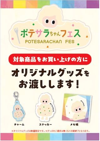 イベントでは、試食商品を購入した人に「ポテサラちゃんオリジナルグッズ(チャーム、メモ帳、ステッカー)」をプレゼントする。