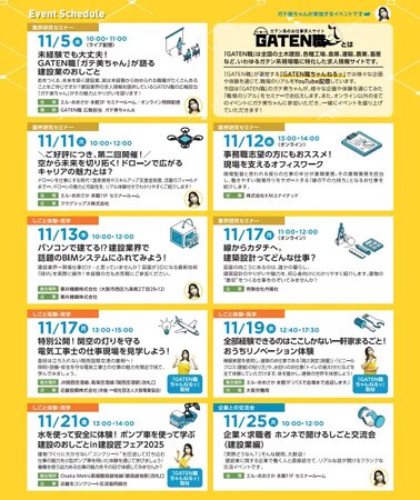 アール・エムが運営する、建設業に特化した求人サイト「GATEN職」が、建設業の新しい魅力を伝える体験型イベント「建設業のおしごとツアー」を、11月5日(水)~25日(火)の期間、大阪市のエル・おおさか、関西国際空港、北大阪高等職業技術専門校などにて開催。オンライン配信も行われる。