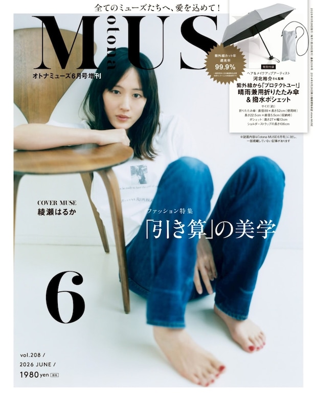 オトナミューズ2026年6月号は4月28日(火)発売! 表紙はすっぴんみたいなナチュラルな綾瀬はるかさんです。『人はなぜラブレターを書くのか』『箱の中の羊』と話題の主演映画の公開が続く綾瀬さん。インタビューではオトナミューズ世代に突入してますます充実するお芝居のこと、作品のことをしっかり語っていただきましたので、こちらもお楽しみに!