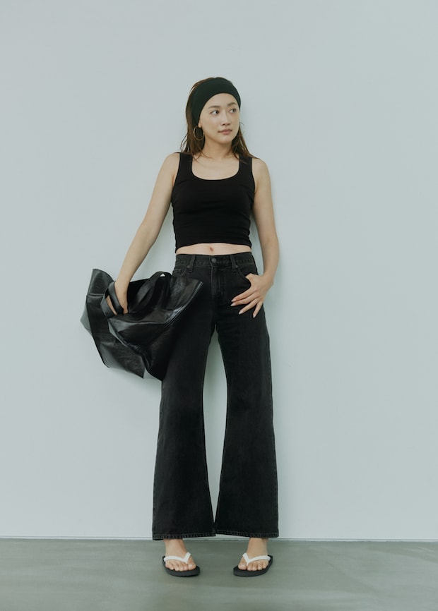 ヨンアさんの長過ぎる脚を包んでいるのは「リーバイス®|ビオトープ」のルーズブーツというモデル。ちょっとゆったりめのフレアシルエットが最旬であることに、疑いの余地はありませんよね。
