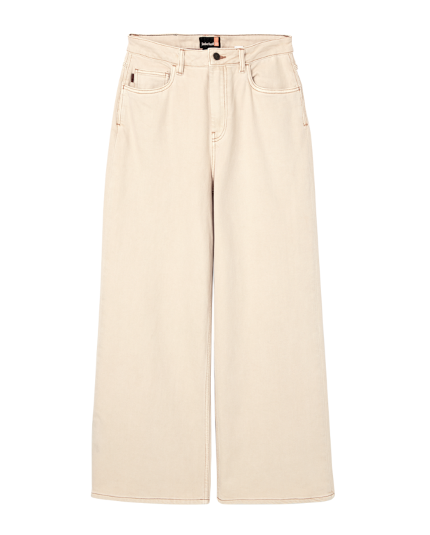 そしてキテるのがエクリュカラーのデニム。こちらはY2Kブームの影響で最近また復権した感のあるティンバーランドのもの。