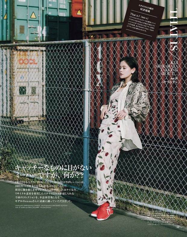 そしてスタイリスト白幡啓センセイは、白幡節が炸裂! H&Mとステラ・マッカートニーとのコラボレーションアイテムをフィーチャーしています。うわあ、サクランボ柄のパンツがあるわけ?