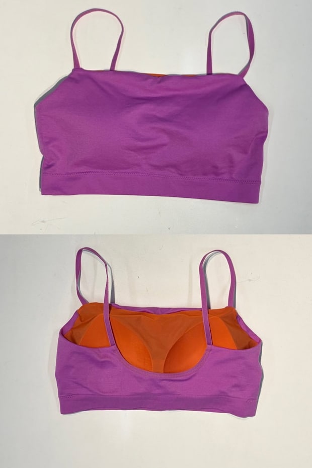 想像以上によかったのがブラウェア。締め付け感がないながらも安定感があり、成形カップを接着した裏生地を内蔵することで、バスト位置もキープできるんです。脇や裾などに縫い目がなく肌あたりがなめらかなのもグッド。ファッション性も抜群に高いので、腹筋を鍛えたら1枚で着たいかも!