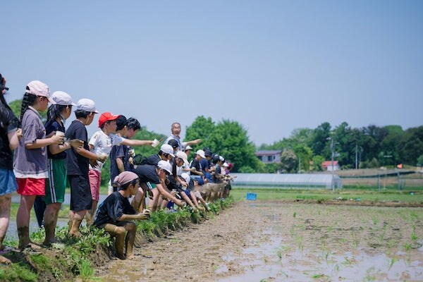 カブトエビ農法用に田んぼを提供している、「田んぼの学校」教頭先生の芳賀勝雄さんをはじめ、特別講師にヤマザキ動物看護大学教授の長島孝行さん、校長先生にタレントの大桃 美代子さんを迎え、10年以上この活動に取り組んでいる。