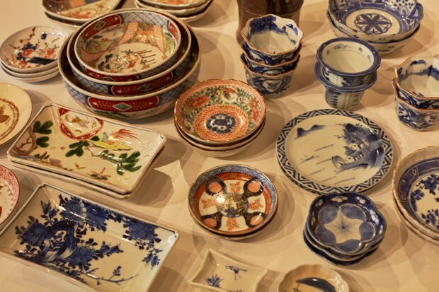 店内奥のテーブルには敬太さんが全国各地から集めたお気に入りの食器がずらり。オリジナルアイテムの他に、セレクトされたアイテムたちも丸山邸の見どころ。小さな可愛らしい小皿などから、自分の家にお持ち帰りしてみるのもいいかも。