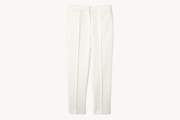 シルエット美のパンツは、腰ではくタイプ。お仕事シーンにはもちろん、学校行事にも活躍するキチンとしたシルエット。パンツ¥36,300(ミラ・ショーン/コロネット)