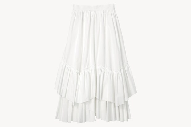 コットンのティアードスカートは、今の季節はざっくりしたニットとの相性抜群。年間通して使えるのも嬉しいですよね。スカート¥29,700(ミ ヴァコンス)