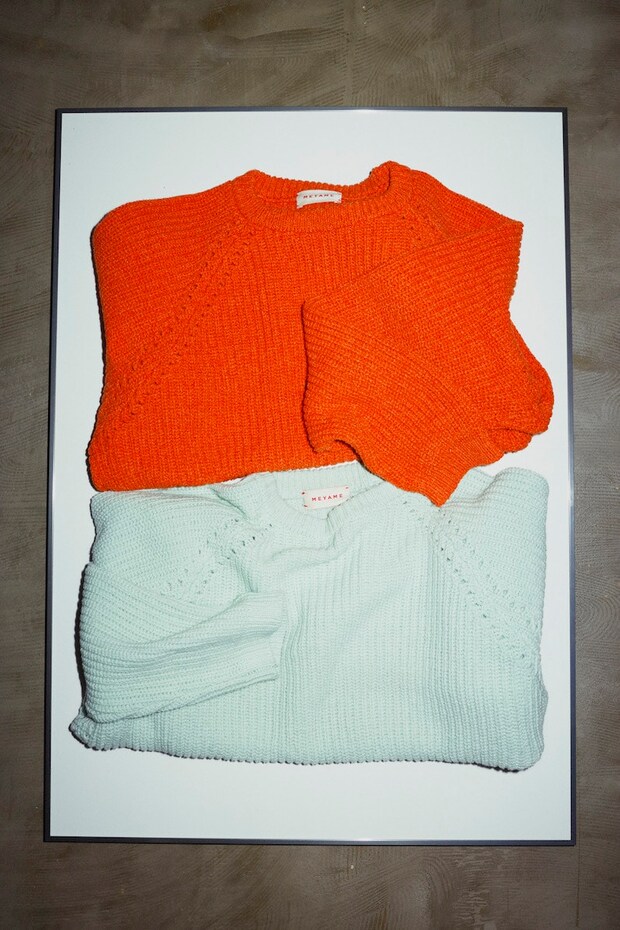 ウールにコットンも入っているので、冬はもちろん、春にかけて長いシーズン着られるミドルゲージニット。とても軽い糸を使しているため、畔編みながら軽やかな着心地が特徴。ウールコットンニット各¥27,500(共にメヤメ)