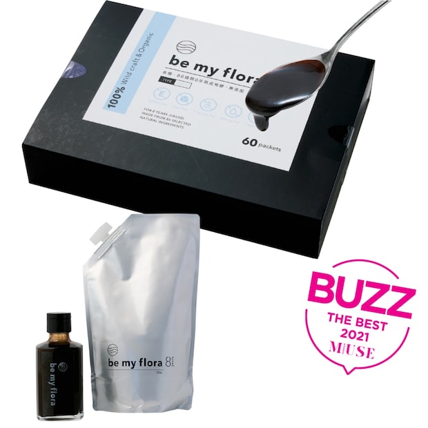 ビーマイフローラは10g×60包で19,500円。公式サイト https://bemyflora.com/ で購入できます。パウチタイプは700gボトル付きで20,000円。マクロビオティック理論に基づいて厳選した86種類のブラジルの野生および有機の野菜、果物、野草、豆類をじっくりと8年に渡り熟成・発酵させたペースト。白砂糖、保存料、香料、着色料、人工甘味料、添加物などはもちろん一切不使用です。