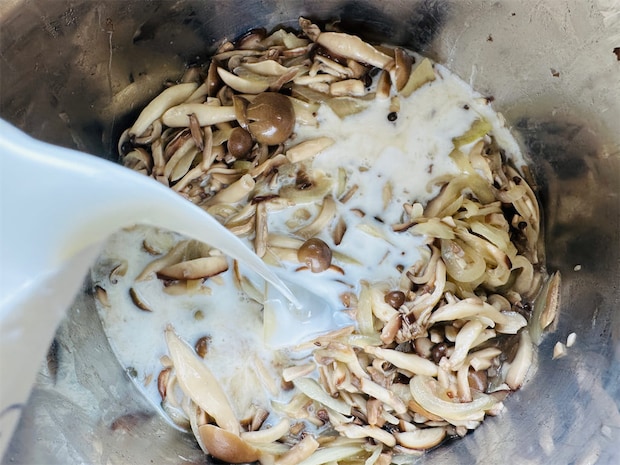 ホワイトマッシュルームと同量のブラウンマッシュルームが入っており、香りも豊かで風味もバツグン。玉ねぎの甘味も加わり、濃厚で深い味わいになっています。