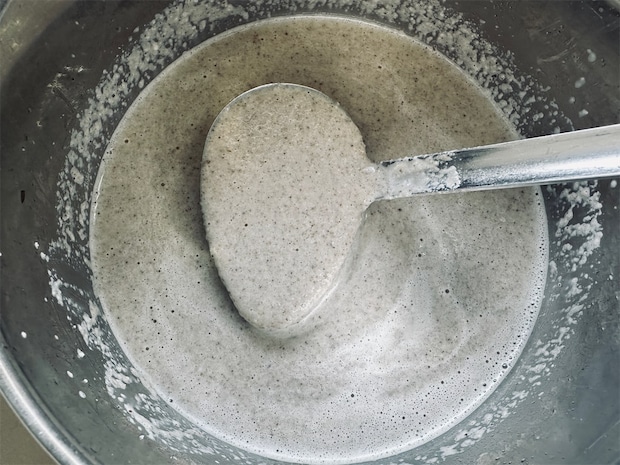 4. ミキサーに3と牛乳を入れて攪拌し、ペースト状にします。