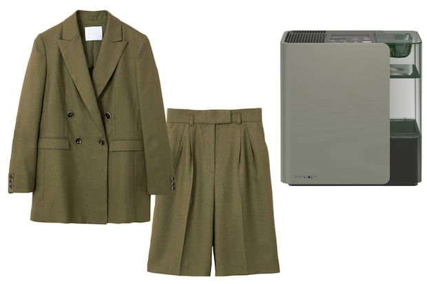 左から:ジャケット¥63,800、パンツ¥38,500(共にマメ クロゴウチ/マメ クロゴウチ オンラインストア)、加湿器※オープン価格(ダイニチ工業/ダイニチ お客様ご相談窓口)