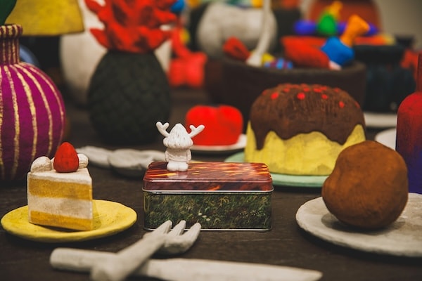 同展の開催を記念し、美術館のすぐ隣にあるカフェ「QINOCO RSK」にて、1957年創業の岡山発の洋菓子店「白十字」、そして現代美術作家・平子雄一氏によるトリプルコラボレーションが実現した。