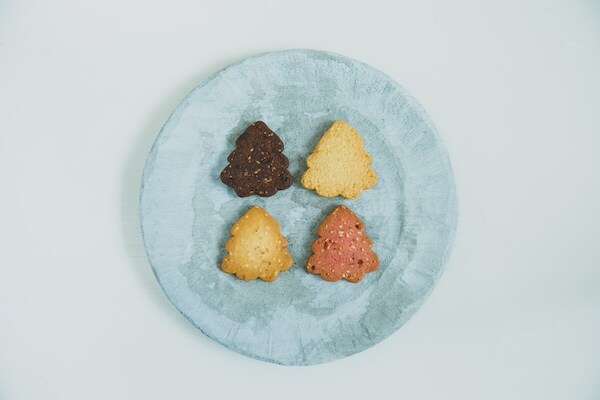 クッキーは、岡山県産小麦粉とアーモンドをベースにした生地に、4つの個性をぎゅっと詰め込んでいる。