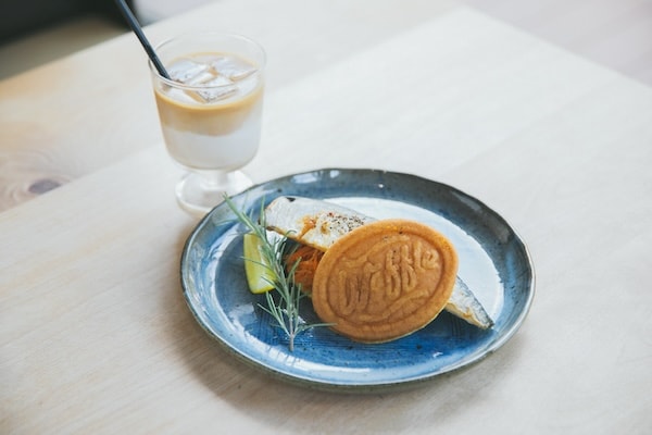 塩焼きにしたサバを、さわやかなサワークリームと、クミンが香るキャロットラペを白十字のワッフルでサンドしている。