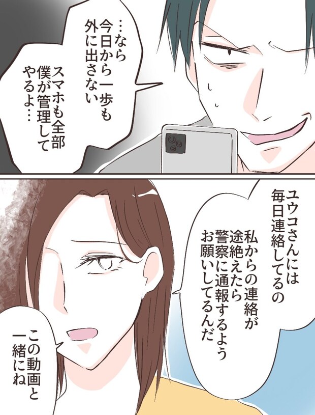 モラハラと不倫の証拠をハズキさんに握られ追い詰められたリヒトさんは「家から一歩も出さない。スマホも管理する」と言い出しますが、リヒトさんがこう出ることを予想していたハズキさんは先手を打っていました。自分からの連絡が途絶えたら警察に通報してほしいとユウコさんにお願いしていたのです。観念したリヒトさんは離婚を受け入れ、ハズキさんは家を出ることができました。ハズキさんから離婚成立の報告を受けたユウコさんは、嬉しそうに微笑んでいました。