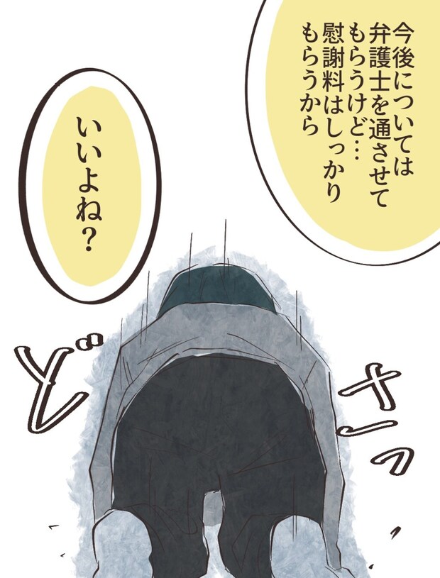 「今後については弁護士を通させてもらうけど・・慰謝料はしっかりもらうから。いいよね?」そう言うと、リヒトさんはどさっと座り込み呆然としていました。