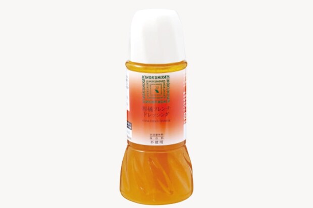国産の温州みかんの果汁に、りんご酢やなたね油を合わせた、甘酸っぱく、フルーティーなドレッシング。肉や魚介にもよく合い、揚げ物やカルパッチョにかけるのもオススメ。280mL ¥537