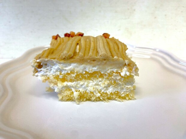 マロンクリームの下には、スポンジ生地とホイップが層になっています。