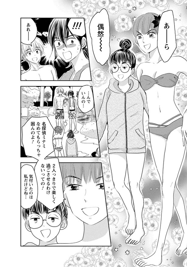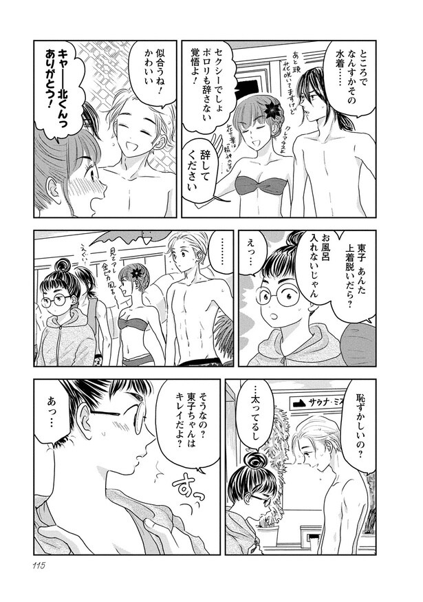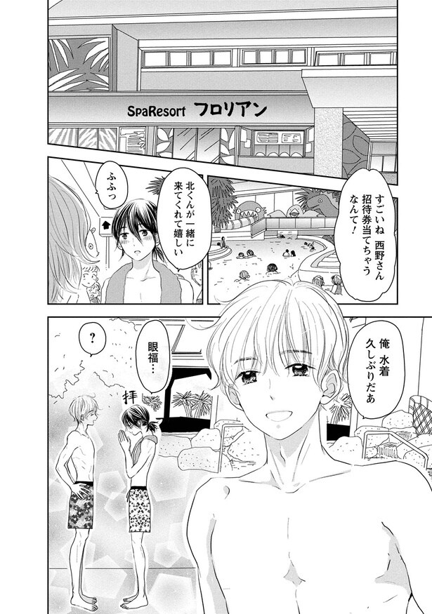 前回、王様ゲームで北くんを独占しようとした東子、南、西野。お互いを潰そうとお酒を勧め合い、結果3人共潰れてしまう。ある日、商店街のクジ引きで『水着で遊べるスパリゾート ペア招待券』が景品に。それを当てたのは…!?