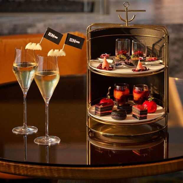 18時以降は、ナイトアフタヌーンティーとして、落ち着いた夜の空間にふさわしい5種のセイボリーと4種のスイーツを用意。アルコールとのペアリングとともに、昼間とは異なる大人の時間を堪能できそう。