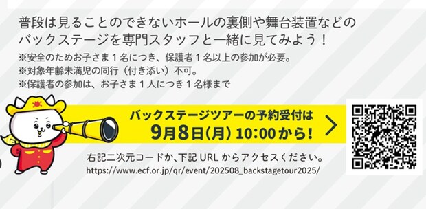 普段は見ることのないホールの裏側を探検できるこのツアーは、小学生以上(小学生は保護者同伴)対象で、参加費は1,000円。
