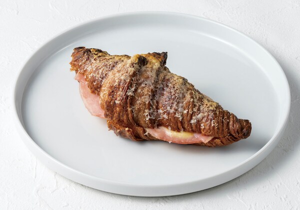 「クロワッサンサンド ハムとチーズのクロックムッシュ」770円(税込)は、店舗で焼いたクロワッサンにホワイトソース、チーズ、ハムをはさんで焼き上げた爽やかな朝にぴったりなメニューだ。