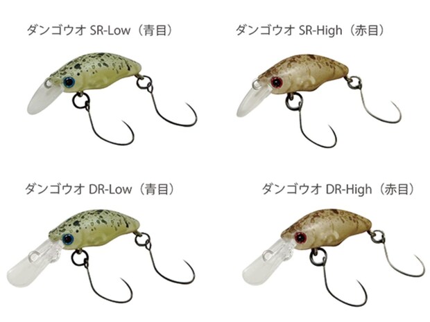 やる気・体力のないトラウトに対して、同じ目線で〝つまみ食い〟させることをメインテーマに開発されたマイクロクランク。水中に漂う草の切れ端や泡のように〝水中同化〟し、魚に対してそっとルアーを近づかせて、目の前で気づかせ反応させる。いわば〝水中浮遊系〟クランクのダンゴウオは、「SR(シャロ―ランナー)」と「DR(ディープランナー)」の2タイプ展開で、それぞれにゆっくりと浮きやすい「High」と、ゆっくりと沈みやすい「Low」のシンクレートが設定されている。