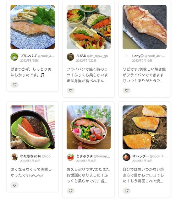 つくれぽ(つくりましたフォトレポートのこと)にも「フライパンでできるふっくら焼き鮭、とっても美味しかったです」「時間が経ってもふっくらでした。今度から塩鮭を焼く時はこの方法でやりたいとおもいます。」など、絶賛コメントがたくさん届いています。