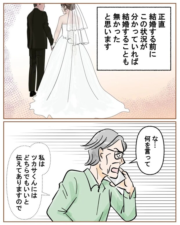 「私は、お義母さんの代わりじゃないです。お義母さんがされてきたことをしてほしいって望まれるのであれば、ツカサくんの伴侶は私ではなかったかなって思いました」とハッキリ言いました。