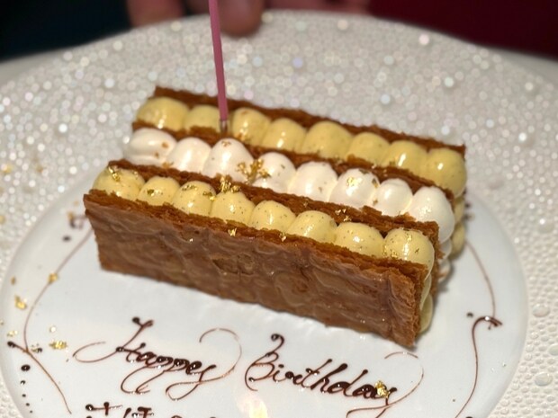 フランスの伝統的なスイーツ、ミルフィーユもこちらのカフェの人気商品です。何層にも重ねた生地のサクッとした食感、上質なマダガスカル産バニラを使用した口当たりの違う2種のクリームが使用されています。こちらバースデープレートなども対応してくれますので、お誕生日などの特別な日にいかがでしょうか?
