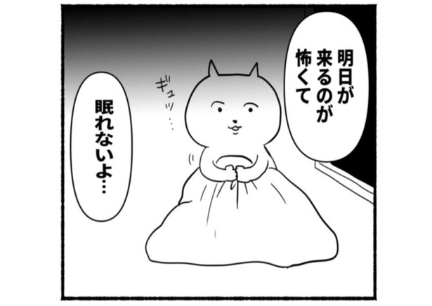明日も6時起きで早いのに。明日が来るのが怖くて全然眠れない…!/『残業ねこ』