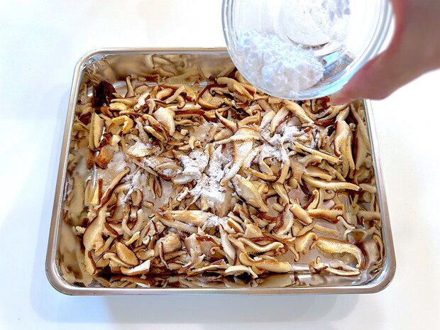 4. 1のしいたけに片栗粉をまぶす。