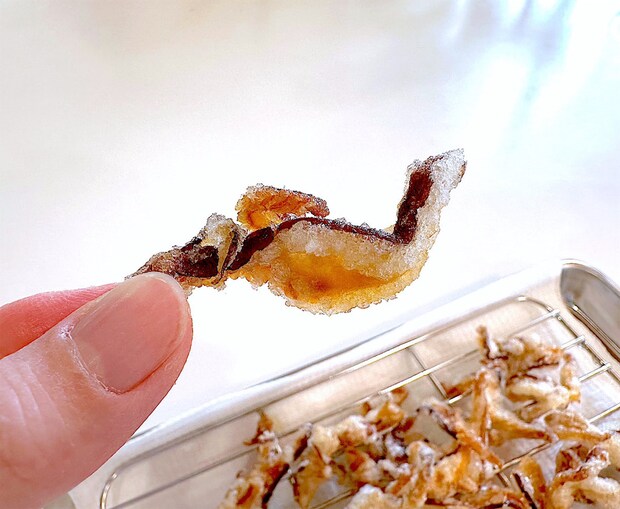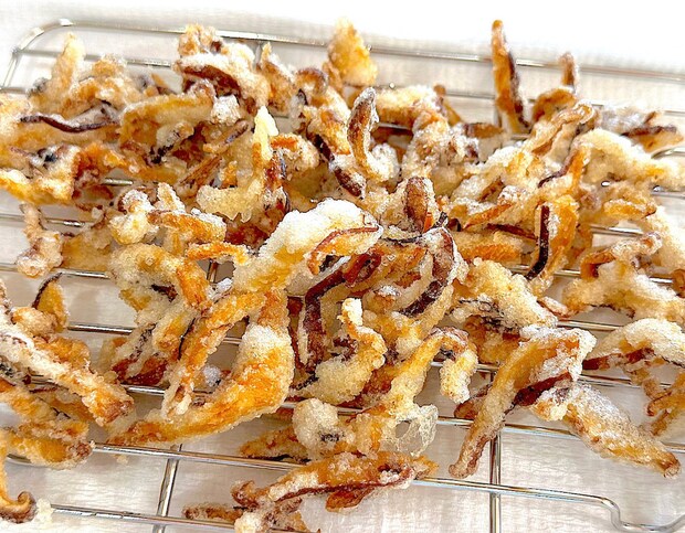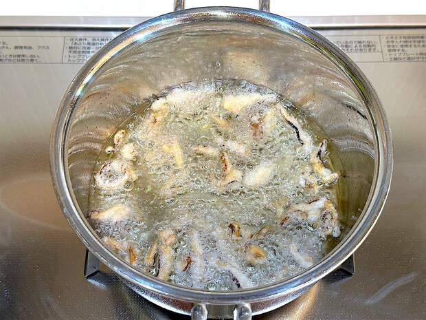 しいたけ同士がくっつかず、バラバラになるように揚げるのがコツ!