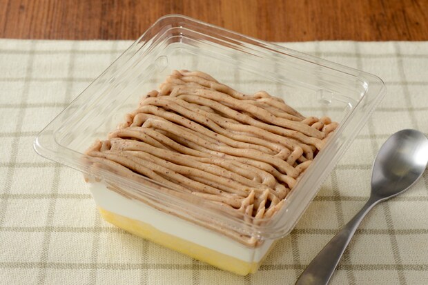 スポンジの上に、生クリームを配合したホイップクリームを重ね、渋皮栗のペーストを使ったモンブランクリームを絞っている。10月10日発売。納品日は10月10日~12日、24日~26日、11月14日~16日。