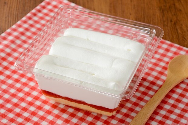 スポンジに、いちごソースとクリームを重ねたシンプルなケーキ。大容量だが、甘さ控えめのクリームといちごソースの酸味で、さっぱり食べられるという。10月10日発売。納品日は10月10日~12日、24日~26日、11月14日~16日。