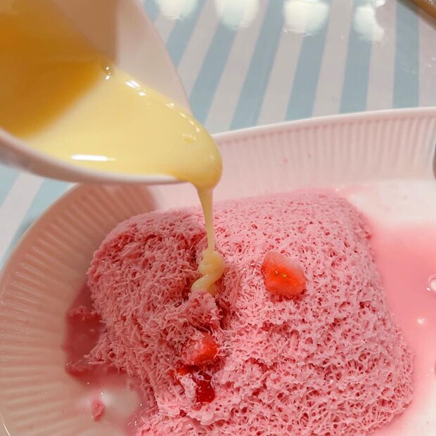 きめ細かい氷が口の中で溶け、ミルキーなイチゴの甘みがくちいっぱいに広がります。