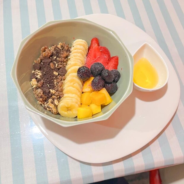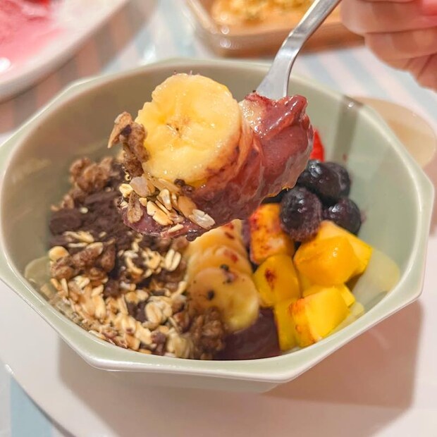 アサイーボウルは、バナナやブルーベリーなどのフルーツとグラノーラ+オレオクッキーがトッピングされて900円とお手頃価格♪