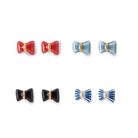 「リボン(ピアス・イヤリング)」は、多くの試行錯誤を経て誕生した商品。小ぶりながらも甘すぎず、存在感を放ち、きちんと感と女子力のある作品だ。色は赤、水灰、黒、染付があり、赤、水灰、黒は4,400円(税込)、染付は4,950円(税込)。