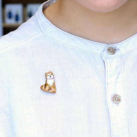 「赤い首輪の柴」のピンバッチは、どこかとぼけたような表情にこだわって制作。見ているとほっこりと顔が緩むのは、犬好きがデザインしたせいだろう。色は茶、白、黒があり、価格は4,400円(税込)となっている。