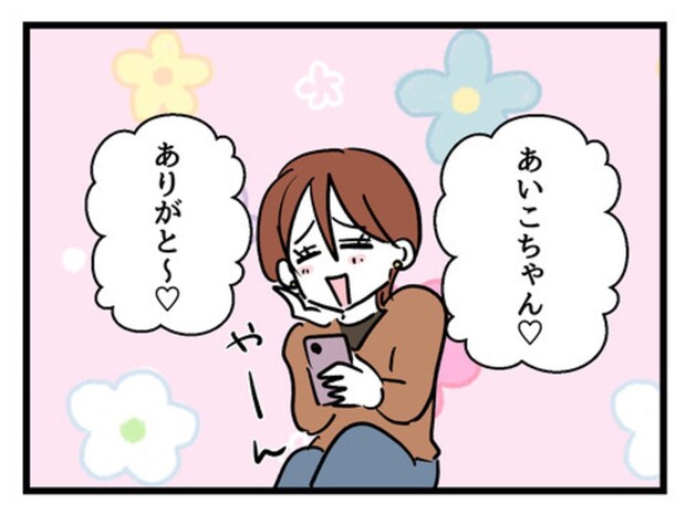アイコちゃんからやっと返信がきたようです。祝福してくれているメッセージで幸せに満ち溢れるキリコさん。