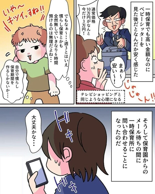 それでも、働かないのは現実的ではありません。認可保育園は落選し、認証保育園(認可外)も厳しい状況。そして、ベビーシッターも検討しますが、予算オーバー。