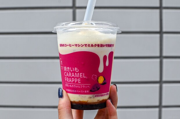 2025年9月23日(火)から発売開始された、ローソン「焼きいもカラメルフラッペ」。九州産紅はるかの焼きいもペーストを使い、お芋とカラメルの組み合わせを楽しめる1杯です。