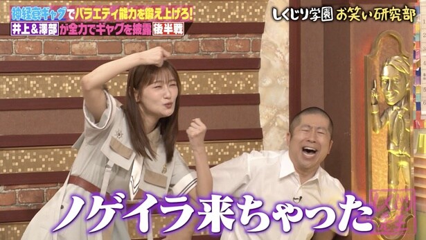 武元×吉村ペアが引いたカードは、オバマ元大統領のものまねで知られるお笑いコンビ・デンジャラスのノッチ。指名されたのは井上×澤部ペアで、井上は「Yes we can!」「ノゲイラ」「このバカタレが!」とノッチギャグをノンストップで披露。機転を利かせ、打ち合わせとは違うオチで笑いを生んだ井上に、若林は「すごい対応力」「(ネタを)組み立てられる人?」とコメントした。